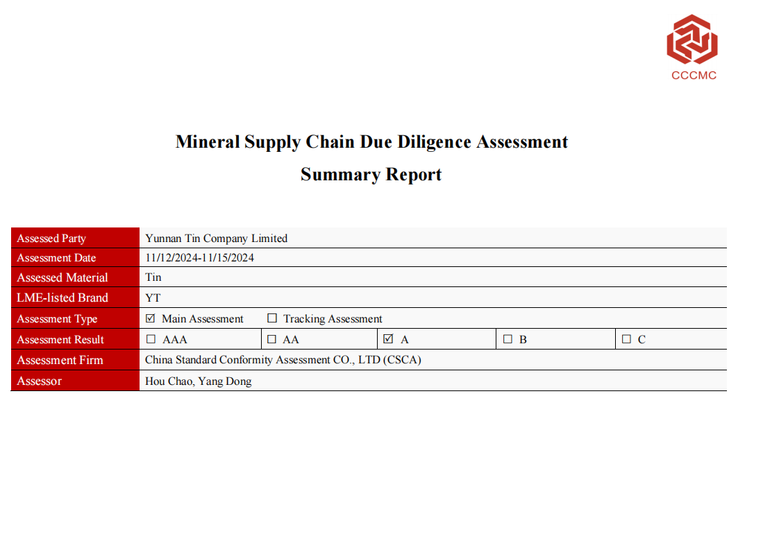 ©Copyright Yunnan tin Limited by Share Ltd All rights reserved.