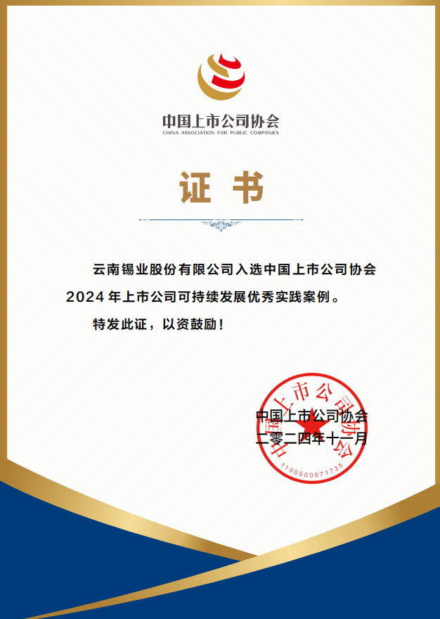 2022年,锡业股份荣获“云南省商务工作先进集体”荣誉称号