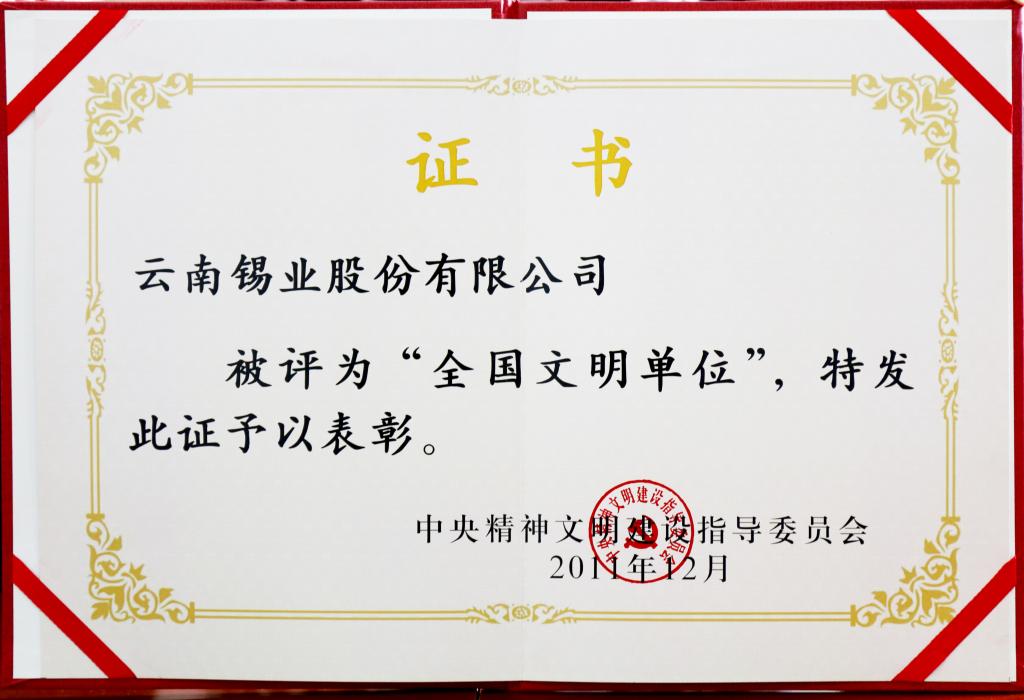荣获2011年“全国文明单位”