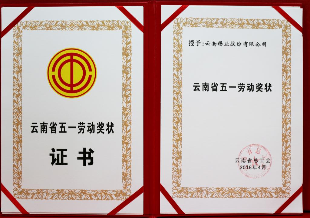 云锡股份公司(云南省五一劳动奖状)