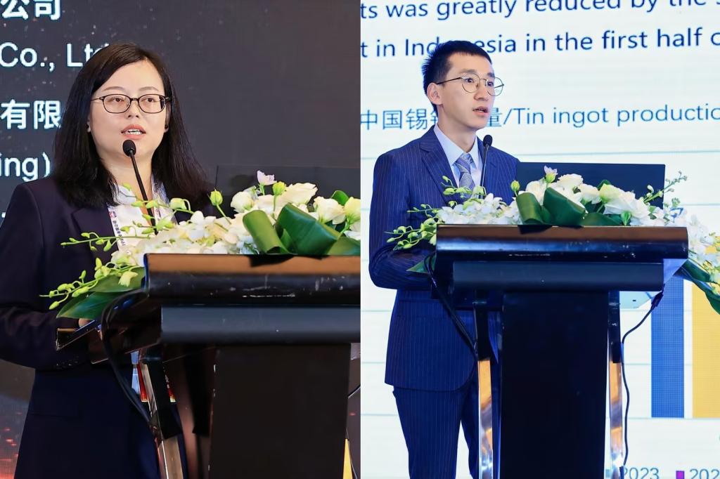 锡业股份审计风控部经理杨薇主持“可持续发展挑战与机遇”环节;锡业股份市场运营中心张哲语作《中国锡市场展望》报告。