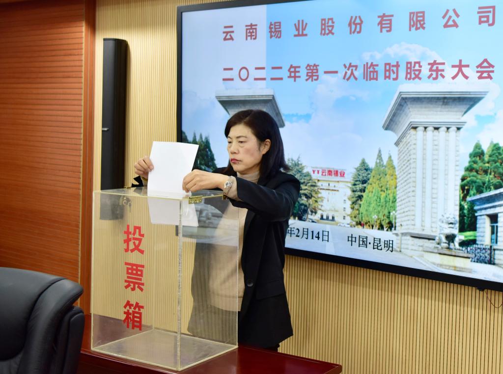 2月14日,锡业股份2022年第一次临时股东大会在昆明办公楼8楼会议室召开。锡业股份副董事长、总经理杨奕敏女士主持会议。