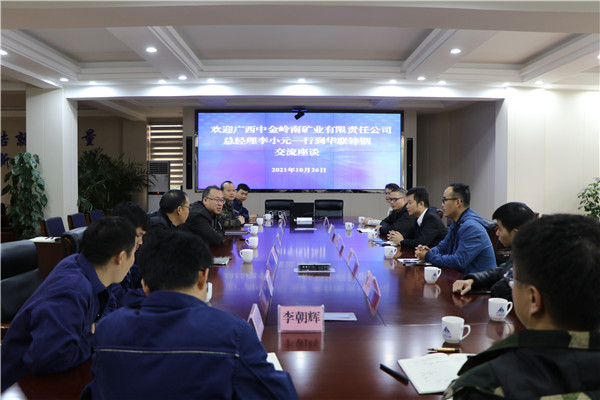 10月26日,广西中金岭南矿业有限责任公司党委副书记、总经理李小元一行5人到华联锌铟参观交流,华联锌铟党委副书记、副董事长、总经理赵云魁,副总经理杨建宇进行座谈交流。