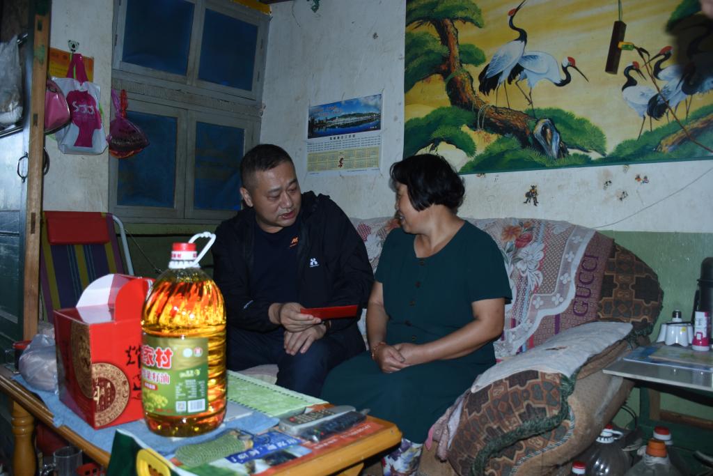 锡业股份党委副书记、副董事长、总经理杨奕敏走访慰问卡房分公司困难职工杨元福、李嘎里。(陈 红/摄)