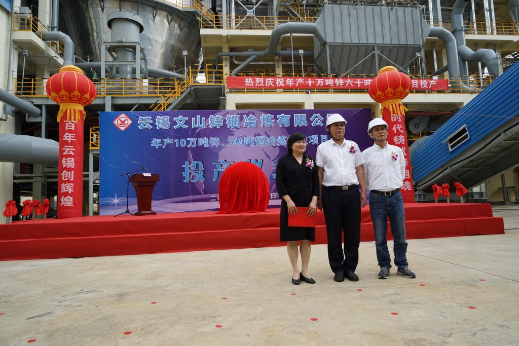 控股公司、锡业股份、中国铜业有限公司、中国恩菲工程技术有限公司、中国瑞林工程技术股份有限公司、华联锌铟公司、云锡文山锌铟冶炼有限公司等19家单位相关领导共计100余人出席项目投产仪式。