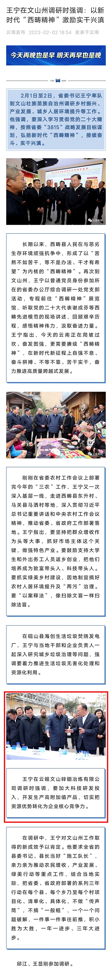 云南发布:王宁在文山州调研时强调:以新时代“西畴精神”激励实干兴滇