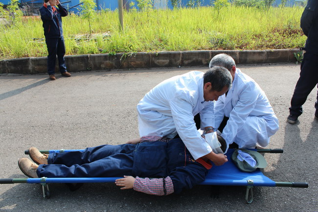 演练设置为早上9点30分左右,在通勤车乘坐点,一群身份不明的人员在职工乘坐通勤车下班时进行突然袭击,对车间设施进行破坏,其中3名“暴恐分子”在中巴车内挟持了3名职工,守护精选工段的保卫人员接到报警后,两名保卫人员立即对恐怖分子进行阻击,另外一名保卫人员立即把情况上报给反恐小组办公室,反恐领导小组迅速启动应急方案。