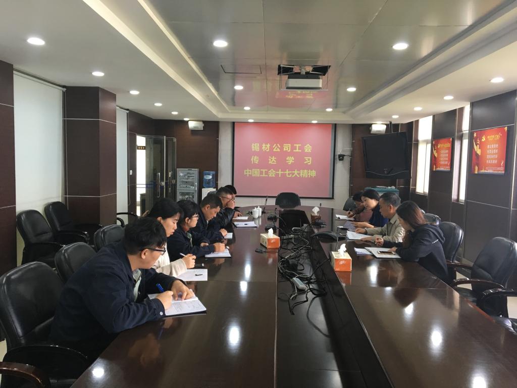 11月9日,锡材公司工会召开工会干部会议传达学习中国工会十七大精神。