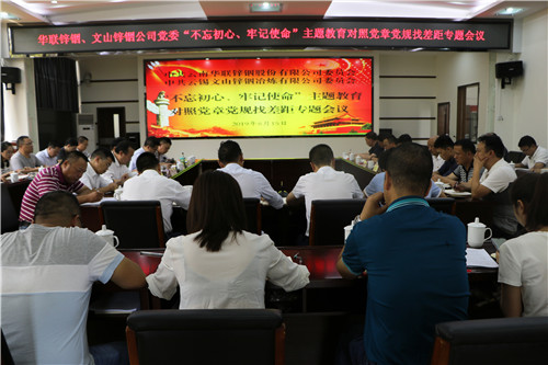 8月15日,华联锌铟、文山锌铟党委在华联锌铟五楼会议室召开对照党章党规找差距专题会议,以正视问题的自觉和刀刃向内的勇气,逐一对照、全面查找各种违背初心和使命的问题,真刀真枪解决问题。控股公司党委主题教育第八指导组副组长杨满昌到会指导,华联锌铟、文山锌铟公司党委书记、董事长张学平主持会议。