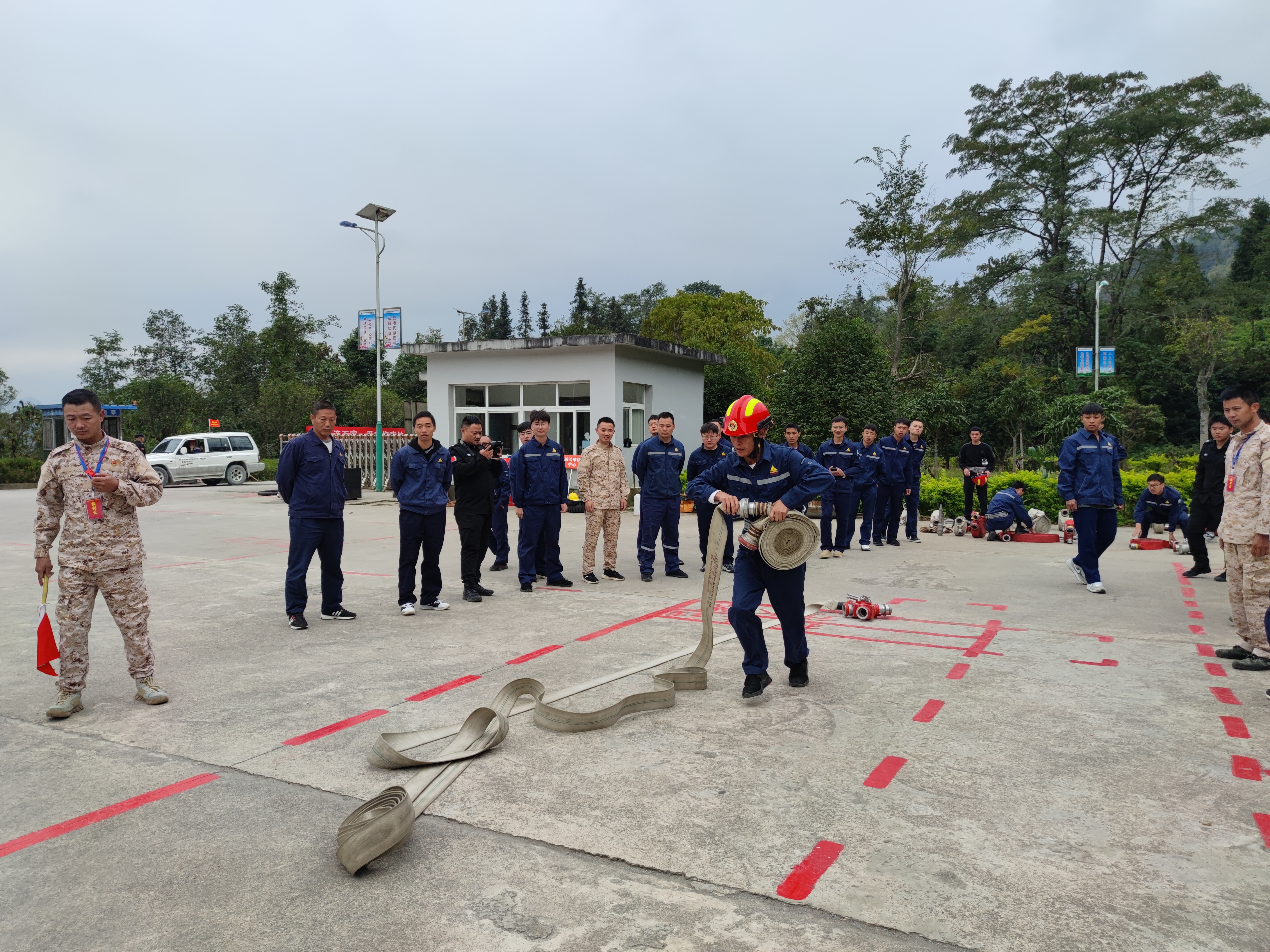 11月9日,华联锌铟在新田选矿车间训练场组织开展“11·9”消防技能比武竞赛,由各基层工会48名职工组成的8支专(兼)职消防应急救援队参赛。