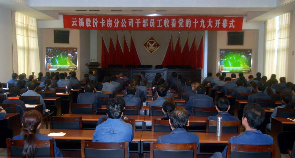 云锡控股公司和锡业股份机关党员干部职工260余人在云锡宾馆报告厅进行了集中收看。两级公司领导班子成员与干部员工一起收看了党的十九大开幕会盛况。