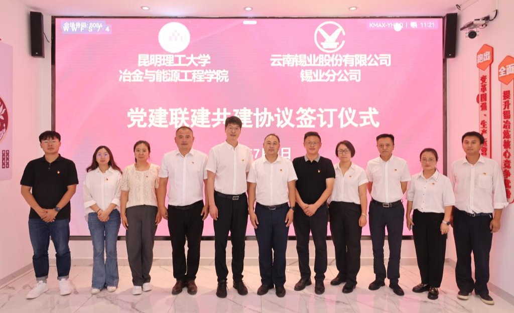 7月9日,锡业分公司党委与昆明理工大学冶金与能源工程学院党委举行党建联建共建协议签订仪式,进一步发挥党建引领作用,建立长效联建共建机制,深化产学研合作成效。