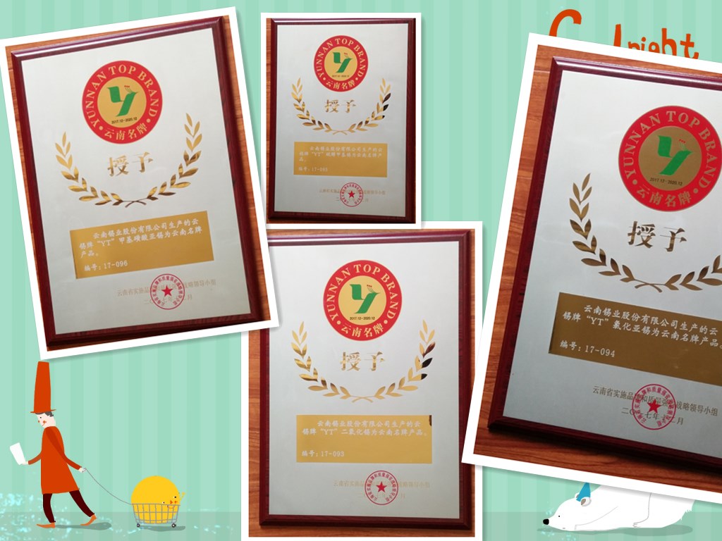 2017年,锡业股份品牌建设工作持续取得成效,新申报的甲基磺酸亚锡产品通过云南省名牌战略推进委员会审核,被评为云南名牌产品,氯...