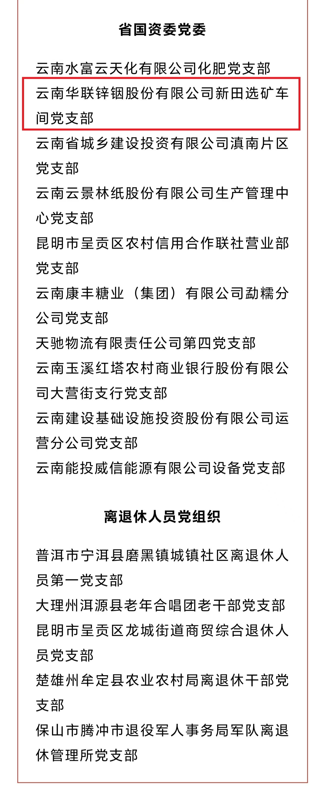 近日,中共云南省委组织部发布了《关于命名2023年度“云岭先锋红旗党支部”的决定》,华联锌铟公司新田选矿车间党支部榜上有名