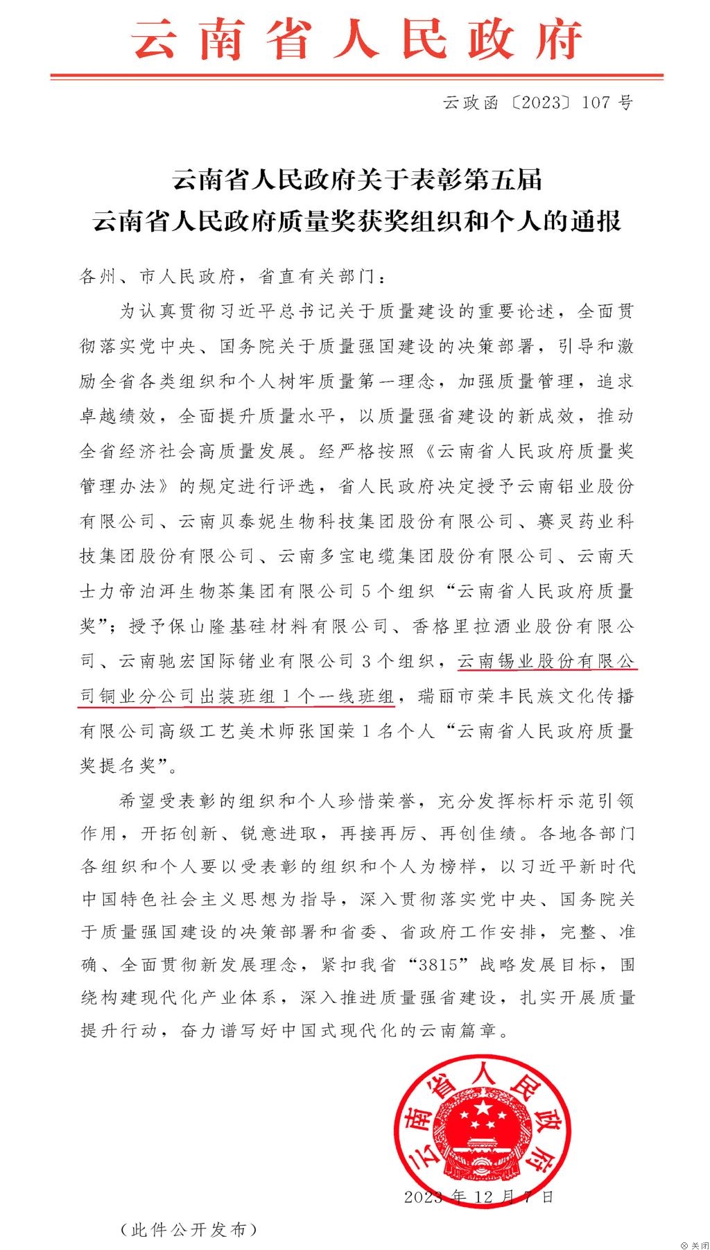 近日,由云南省企业联合会、云南省企业家协会公开发布的“2023云南企业100强”新鲜出炉。锡业股份位列2023云南高新技术企业100强第1位,...