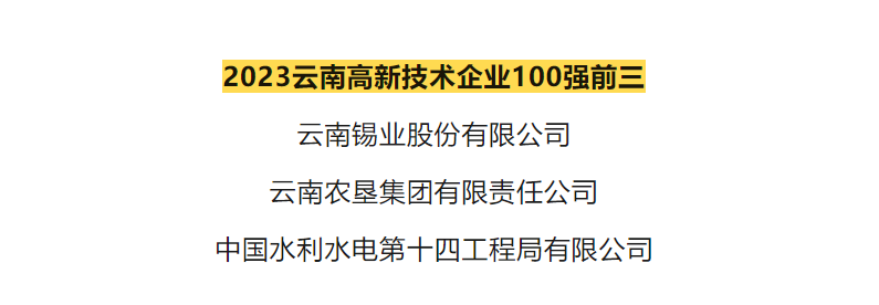 锡业股份位列2023云南制造业企业100强、2023云南高新技术企业100强前三