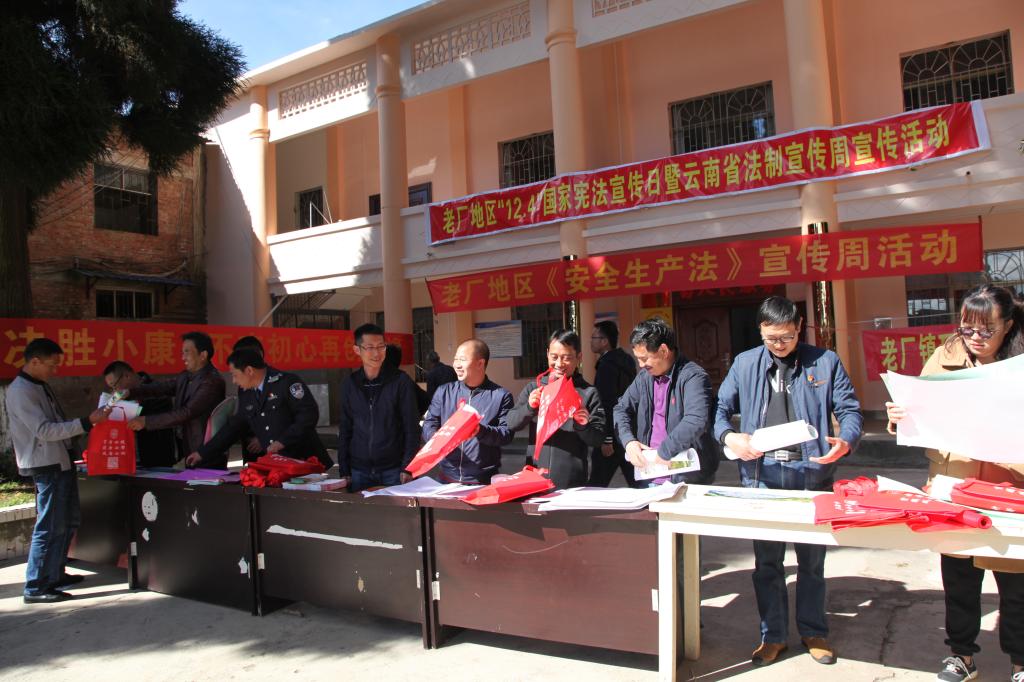 12月6日下午,老厂镇政府和老厂分公司在老厂街俱乐部联合开展“12·4”国家宪法宣传日暨云南省法制宣传周、老厂地区《安全生产法》宣传周活动。