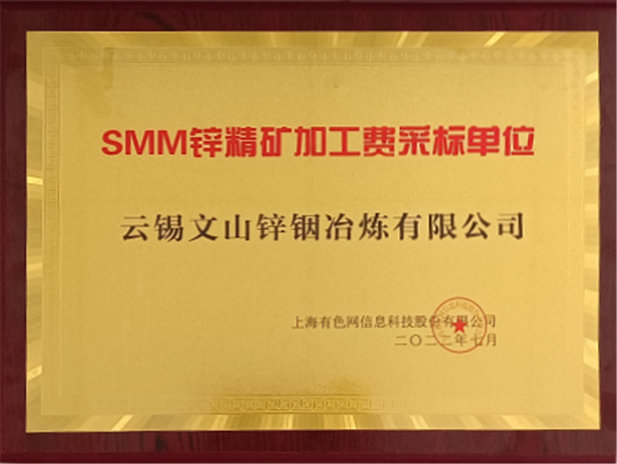 文山锌铟被评为“SMM锌精矿加工费采标单位”